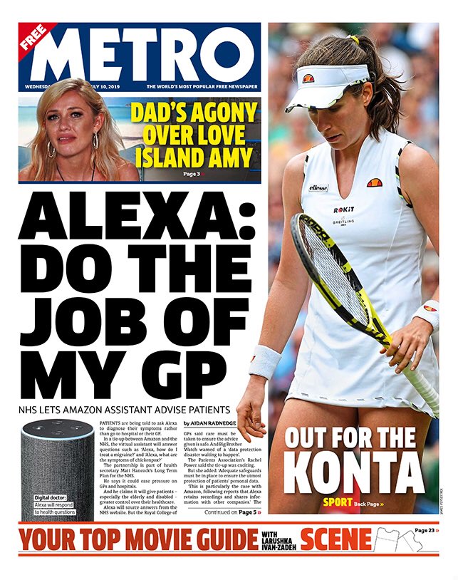 Two issues: 1. We don’t know that is what people will ask, rather than ask more complex questions. See the challenges Babylon has had with its automated triage system 2. This is health data being recorded constantly by the Alexa device. How will amazon use that data?