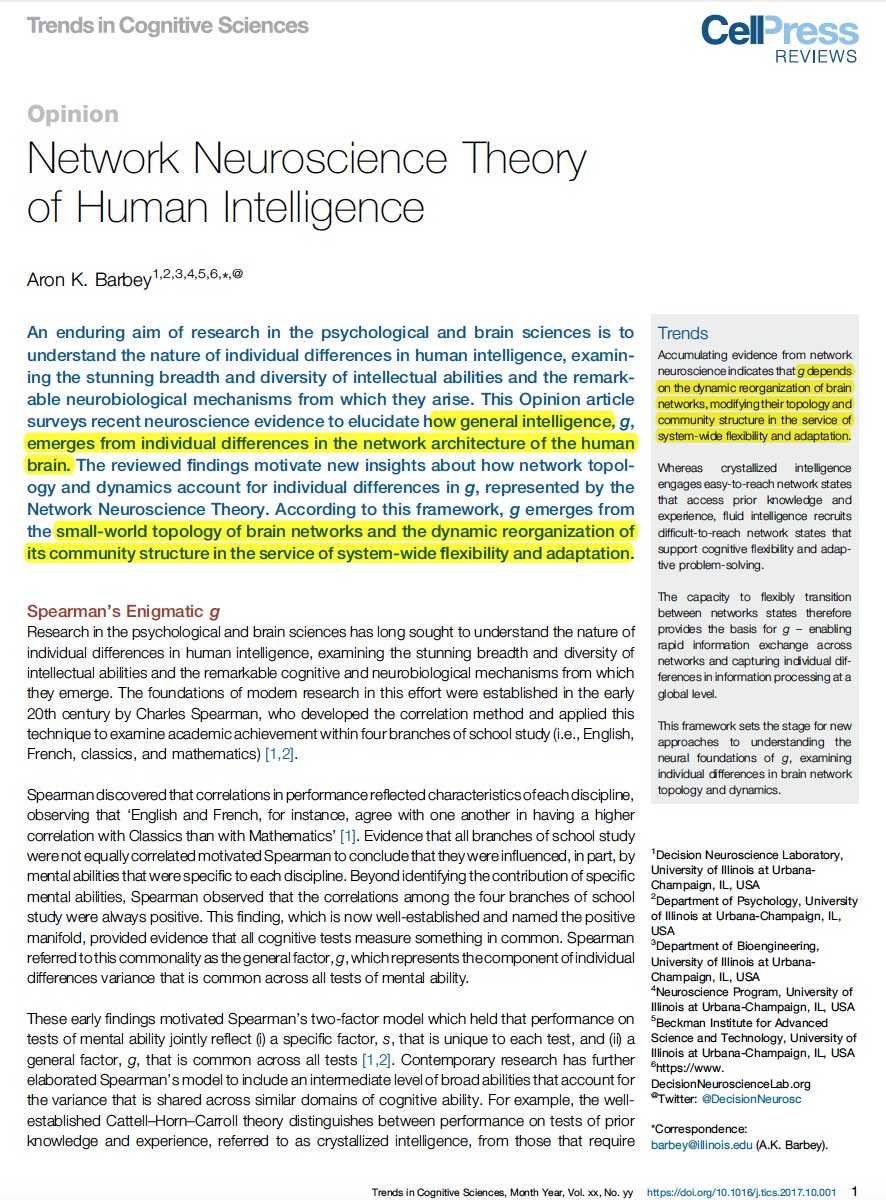 Understanding general intelligence: a new network neuroscience theory Key-flexibility, "crystallized" & "fluid" intelligence http://www.cell.com/trends/cognitive-sciences/fulltext/S1364-6613(17)30221-8 …
