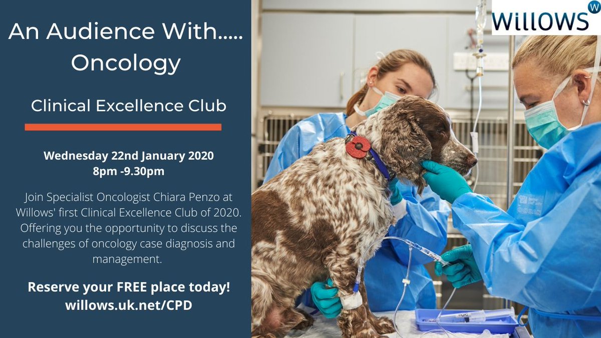 VETERINARY ONCOLOGY CPD, 22nd Jan '20. Join Oncology Specialist Chiara Penzo in discussing the challenges of Oncology case diagnosis and management as well as the opportunity to ask all those burning questions! To book your place visit: http://www.willows.uk.net/cpd