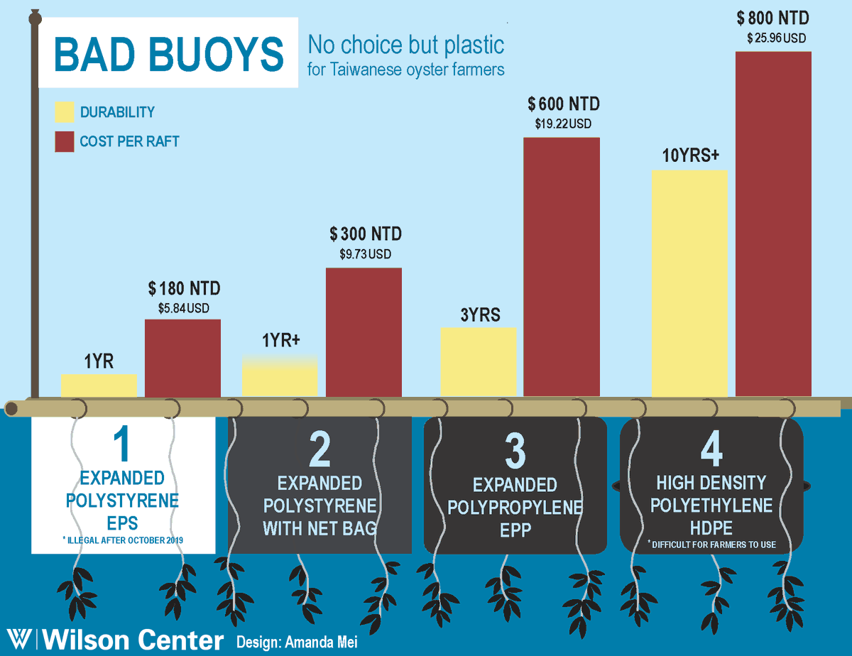 In #Taiwan, oyster farmers have a choice between buoys — but none eliminates the use of #plastic. All contribute to marine debris. The most durable option, HDPE, lasts 10 years but is expensive and difficult to use. https://bit.ly/33iUePm @NewSecurityBeatpic.twitter.com/E3xjIa69br