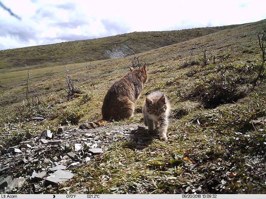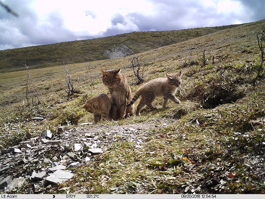 An infrared camera captured a Chinese mountain cat with its two kittens in Sanjiangyuan area, Northwest China's Qinghai province. The Chinese mountain cat is a wild felid endemic to China that is under second-class national protection. pic.twitter.com/wN4WgKQKzJ