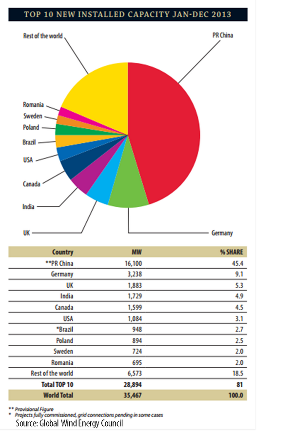 In 2013 China, the world's largest wind power market, installed 45.4% of the world's new added wind power capacitypic.twitter.com/UaeeTCpOLS