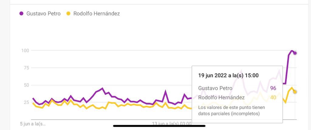 @petrogustavo en Google se disparó enormemente. Ahora en el 70,5% . Según@MMconsultores y Diego A Santos, en esto Google es muy sugerente del humor electoral . Miren