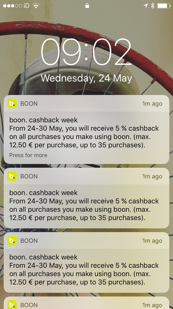 I’ve received 18 promotional push notifications from @wiredcard’s Boon app since 9am today