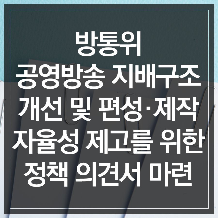 방송통신위원회는 12월 26일 전체회의에서 공영방송 지배구조 개선 및 편성·제작 자율성 제고를 위한 정책과제별 개선방안을 담은 의견서를 마련했다고 밝혔습니다. +더 자세한 내용은 아래 블로그에서 확인하세요