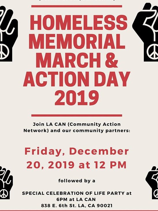 TODAY AT 12 PM National Homeless Memorial March and Celebration 312 E. 5th St., L.A. CA 90013pic.twitter.com/0FdI5dUZnH