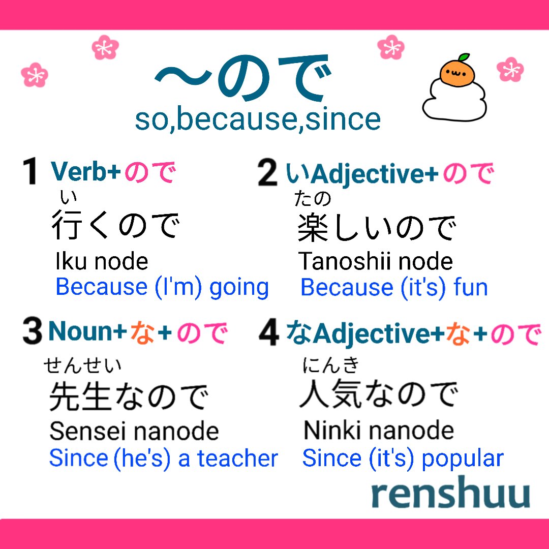 「〜から」と「〜ので」の違い(ちがい)と使い方(つかいかた)のポイントです。 から和ので的差異&使用要點 https://twitter.com/mlcjapanese/status/1224283391874359298?s=20 …