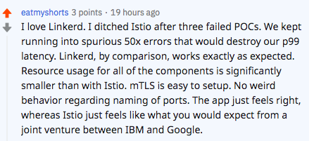 Happy to see some really nice feedback about Linkerd in this Reddit thread about people's Kubecon experience https://www.reddit.com/r/kubernetes/comments/dz3qez/kubecon2019/ …pic.twitter.com/nhqtDzs29w