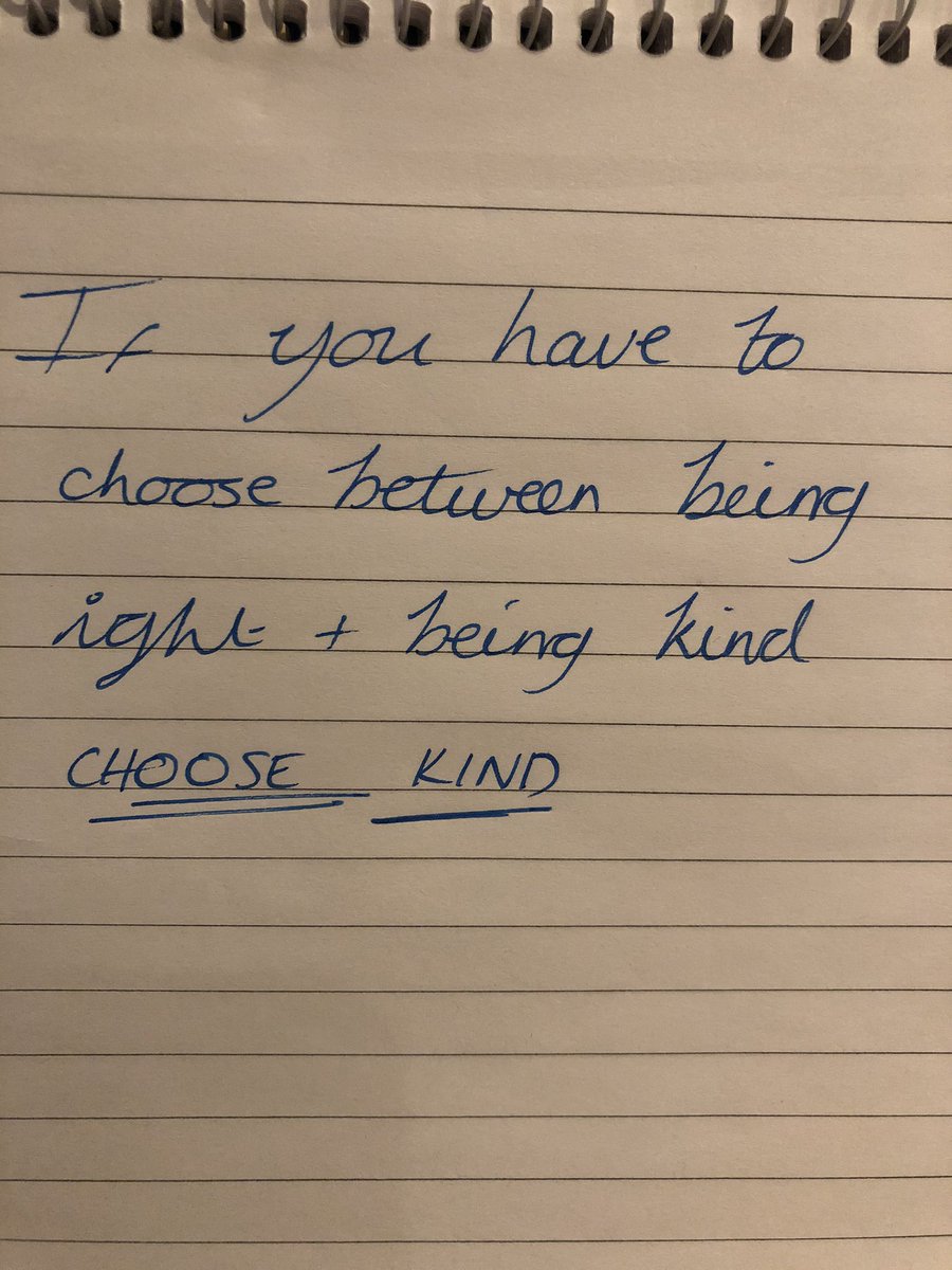 Love it when you hear a quote, it sticks in your mind and you know it will become a mantra for life. 'if you have to choose between being right and being kind