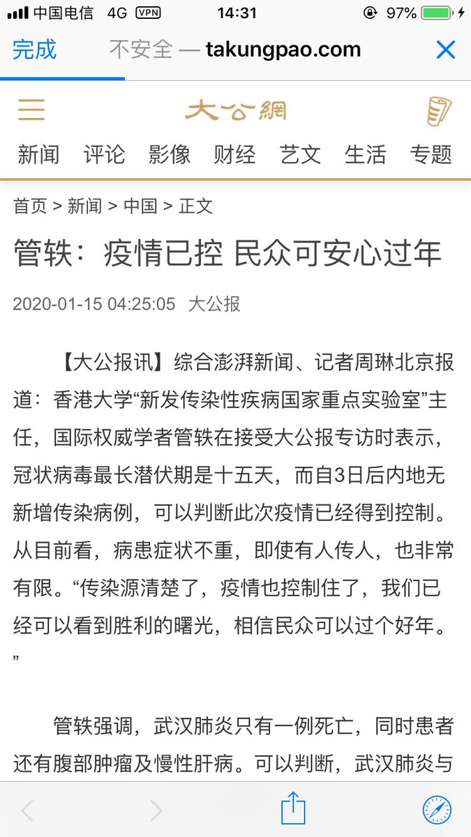 你但凡真的读了财新的采访就会知道管教授的结论是怎么基于他所掌握的信息的改变而改变的。 疫情发展那么快,而且那都一周前了。你拿以官方松口前的数据为前提的结论来说人精分,这认知也太static了吧?!https://twitter.com/eveliu0831/status/1220232593662021632 …