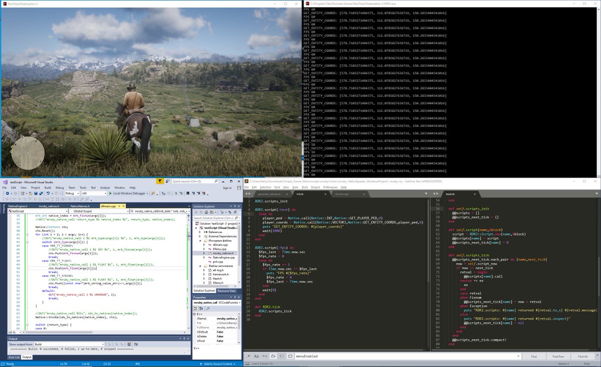 Wrangling a Ruby into Red Dead Redemption 2: I'm working on a script hook plugin that gives you an MRuby VM with a per-frame tick function and access to native game script functionspic.twitter.com/ozYeJsJ56m