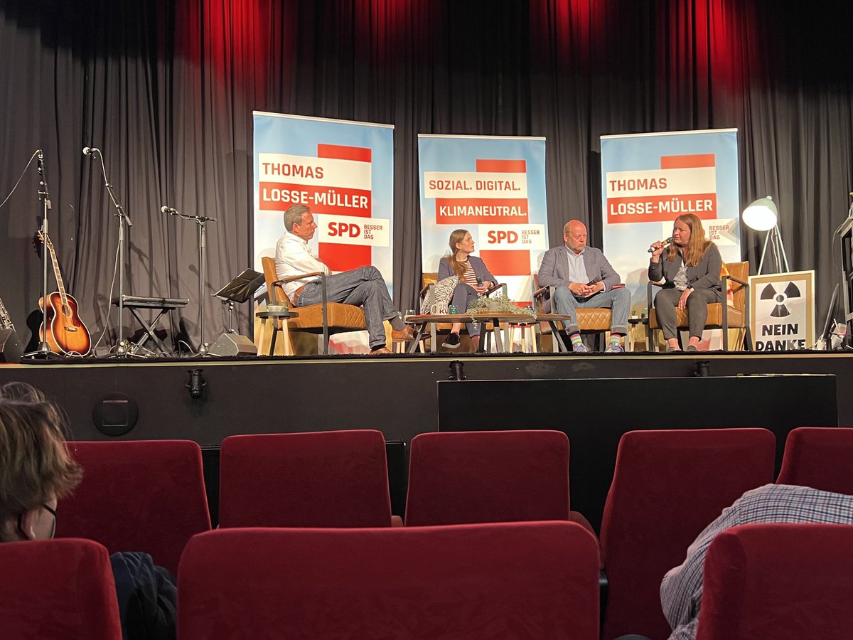 Thomas Losse-Müller und die Lübecker Landtagswahlkandidaten im Theater Geißler.