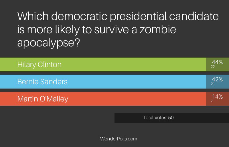 Which democratic presidential candidate is more likely to survive a zombie apocalypse? http://www.wpls.co/1181460 pic.twitter.com/Ikd8OsNAdd