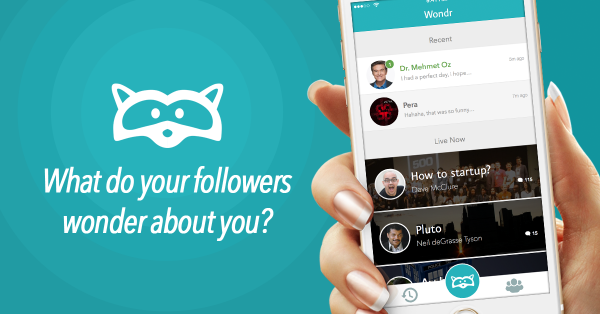 Create a Wondr session and chat with your Twitter followers now! Get the app now: http://www.getwondr.com pic.twitter.com/fQ9JO7t4NO