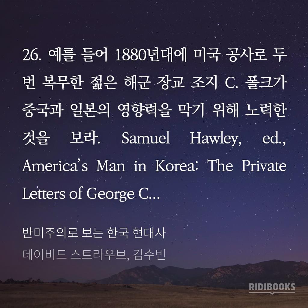 사두고 완독하지 못한 책들 중 하나. 반미주의로 보는 한국 현대사. 19세기 미국과 한국의 첫 만남부터 제목보다 훨씬 큰 범위를 매우 충실하게 연구. 한국출신 아내 둔 미국 직업외교관으로 한국에 대한 냉정하며 애정어린 시각이 매우 흥미로움. https://ridibooks.com/books/754020479 pic.twitter.com/VYP6G5FxPt