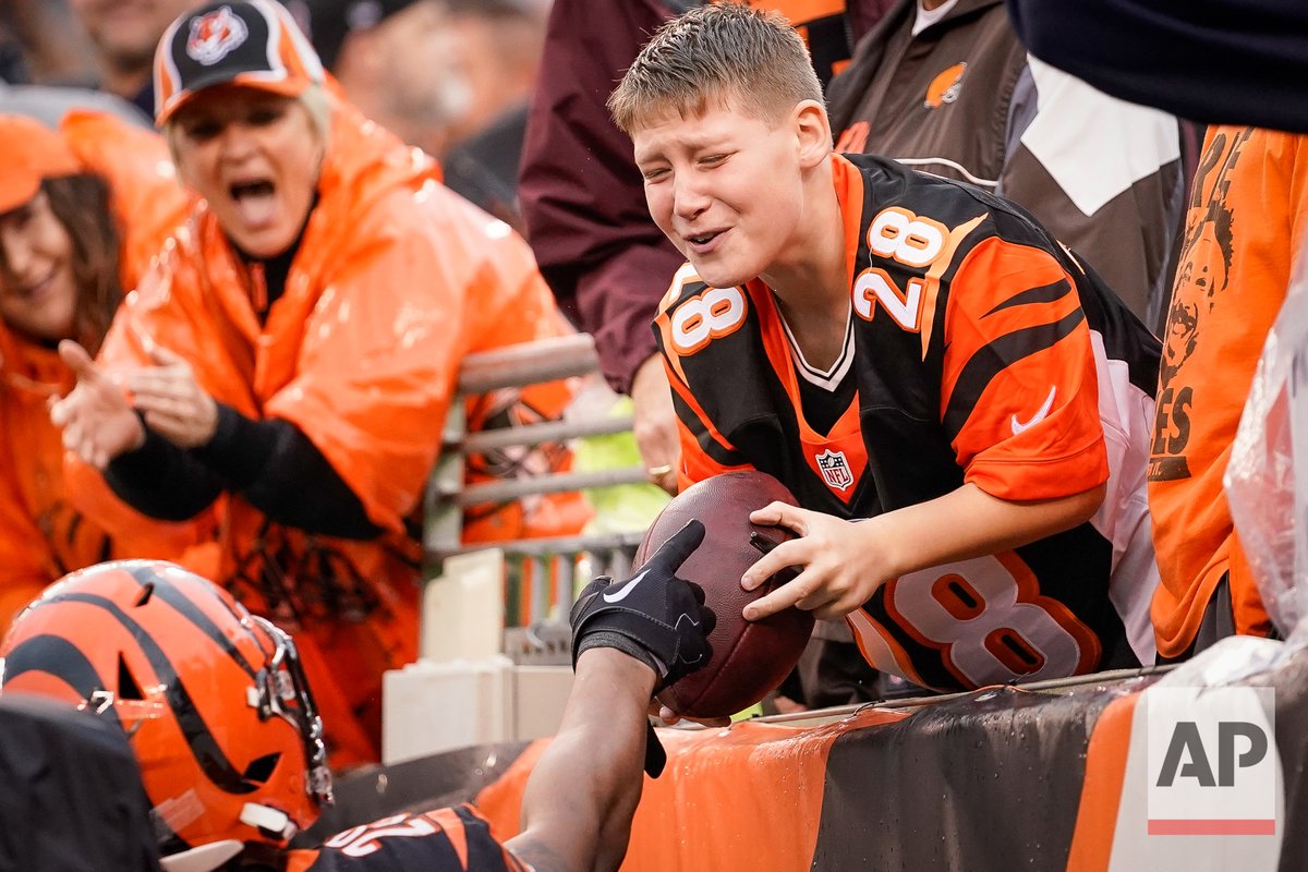 @Bengals@Joe_MainMixon makes a young fans day by presenting him with a#football after scoring a#touchdown during the game against the Cleveland@Browns. Well done,#JoeMixon#SeizeTheDEY