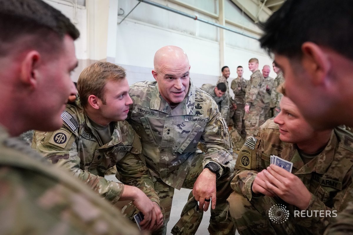 @USArmy Major General James Mingus, Commanding General of@82ndABNDiv visits with@Strike_Hold#paratroopers at@FtBraggNC prior to their@CENTCOM deployment in#MiddleEast, Sun, Jan 5, 2020.@Reuters /@reuterspictures#Military#USArmypic.twitter.com/BjnE68Itvo