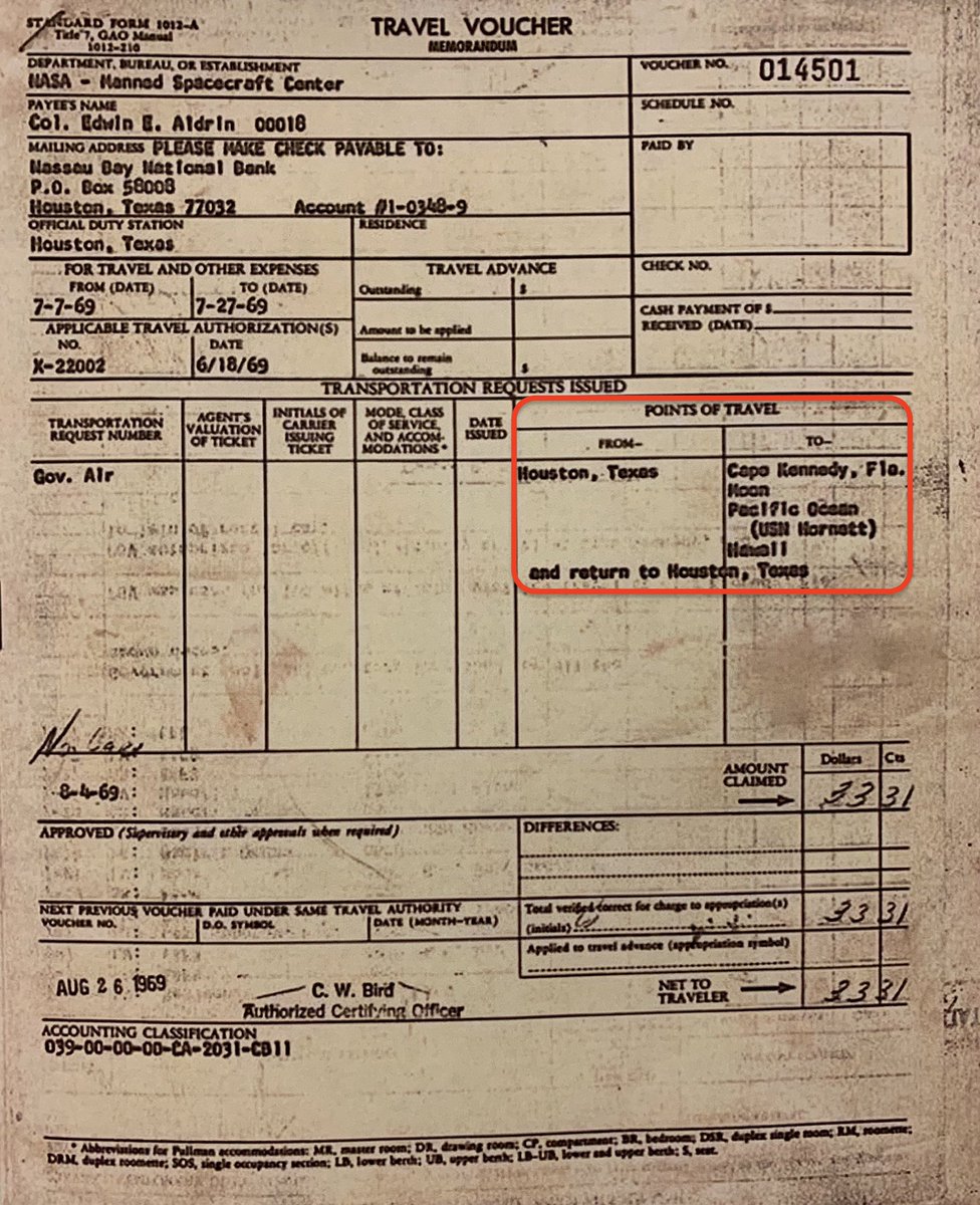 Col Aldrin went TDY to the Moon and back, only got $33 for travel... if only