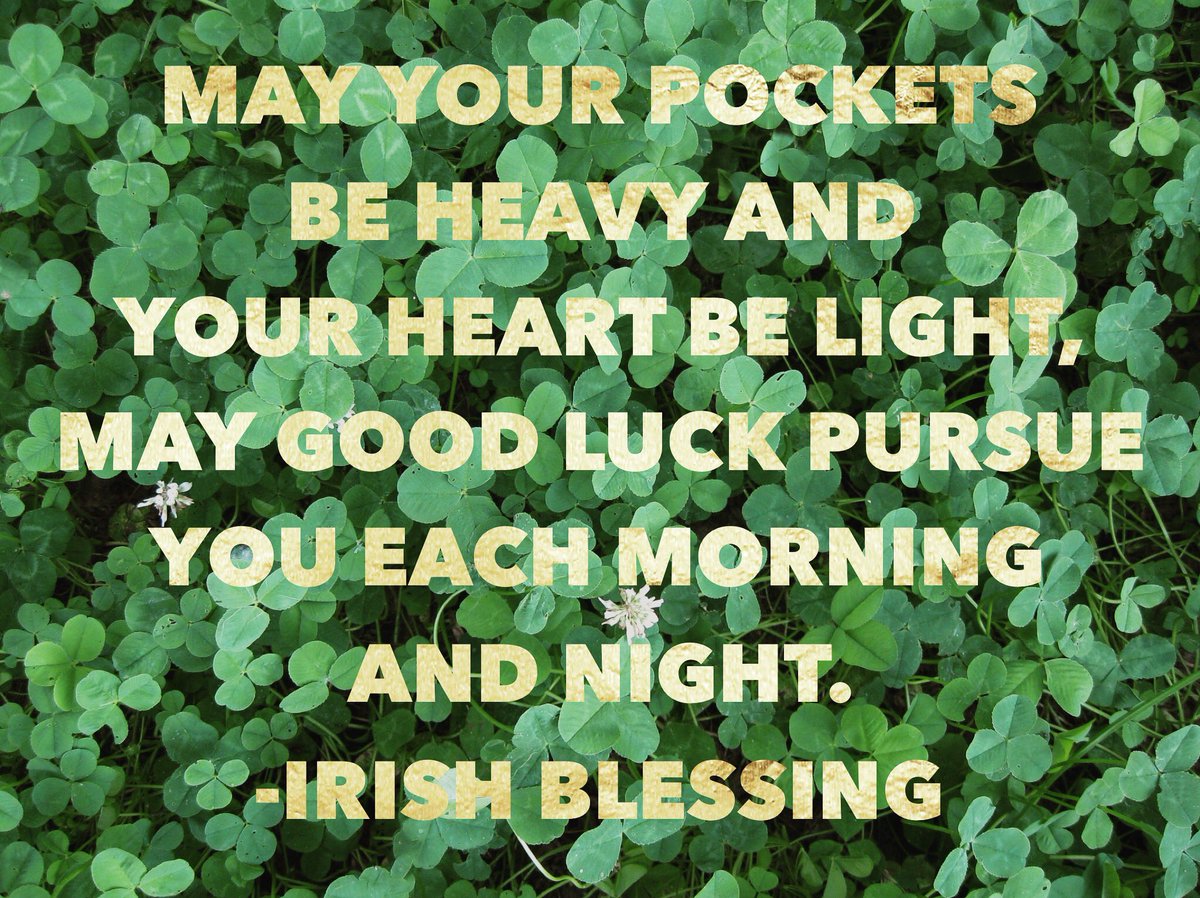 May your pockets be heavy and your heart be light, May good luck pursue you each morning and night.