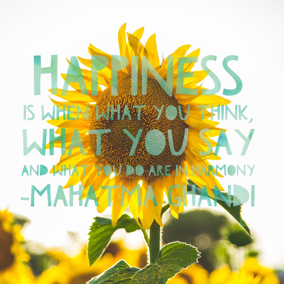 "Happiness is when what you think, what you say and what you do are in harmony."-Mahatma Ghandi