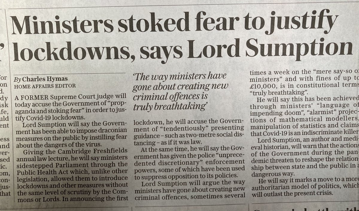"The young - who are almost entirely unaffected by the disease - have been forced to bear the greatest burden." Lord Sumption.https://www.youtube.com/watch?v=amDv2gk8aa0 …
