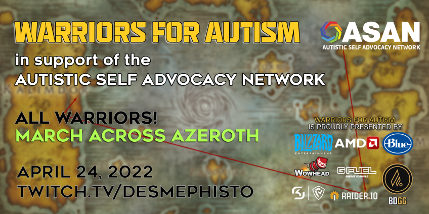 @DesMephisto will be leading the March Across Azeroth - a#Warcraft community charity event in support of the Autistic Self-Advocacy Network, challenging gamers to lend their support for autism acceptance! https://www.wowhead.com/news/desmephistos-march-across-azeroth-warriors-for-autism-charity-event-and-giveaway-326827 …pic.twitter.com/WMDwWBMnKD