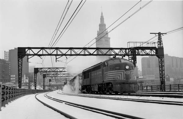 Only one regularly scheduled steam-powered passenger train was allowed at CUT--to idle its steam locomotive west of Huron Rd--and avoid the electric locomotive change at Linndale. New York Central's 90 mph Mercury. It traveled Cleveland-Detroit in 2hrs, 45mins in the 1930s.pic.twitter.com/xecPqMyrAJ