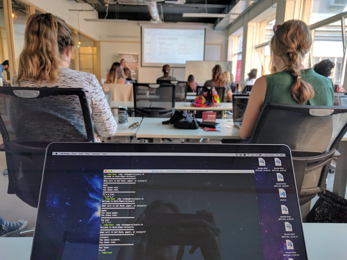 And we're off! Building Rock Paper Scissors in Ruby lead by Ester Kais