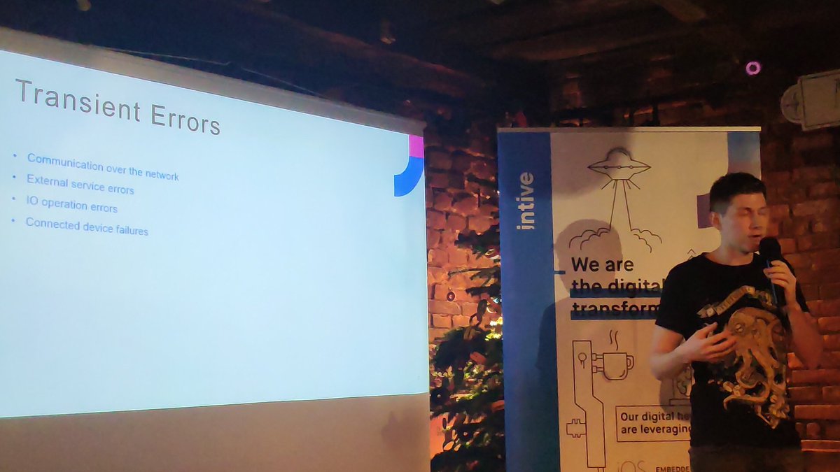 @intive talks about transient errors and a library called#polly. 122@wrocnet meetuppic.twitter.com/IsGDVXc19t