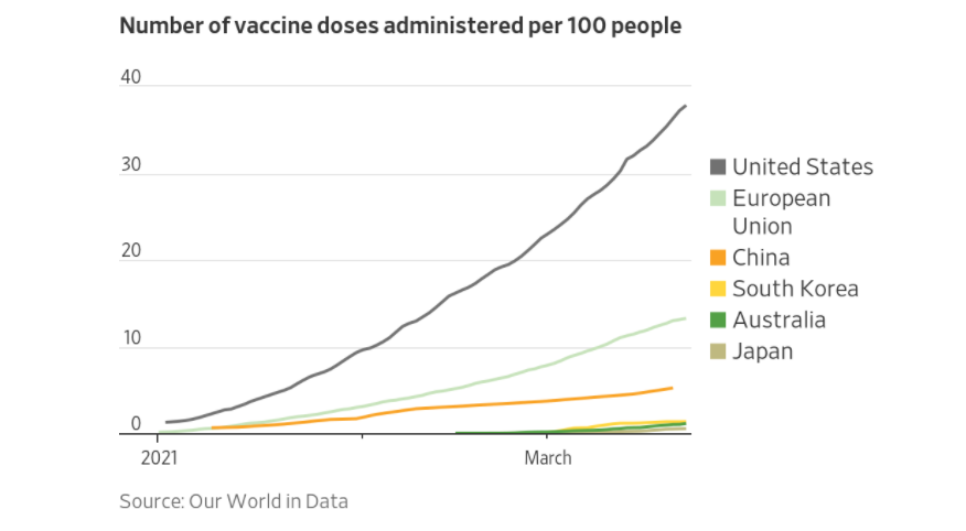 Lots of countries in East Asia and Oceania successfully suppressed or basically eliminated Covid last year. But glacial vaccination programs might put them in the maddening situation where the US, UK and even EU are able to normalise many months earlier than the success stories.pic.twitter.com/o4h9oLCJWc