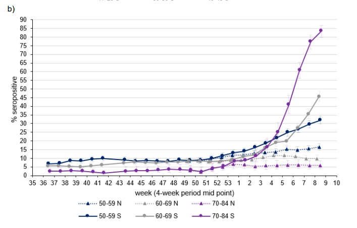 Spike protein antibodies by age group are the solid lines here. The one heading skywards is the 70-84 year olds if it isn't clearpic.twitter.com/sjs3u0STD7