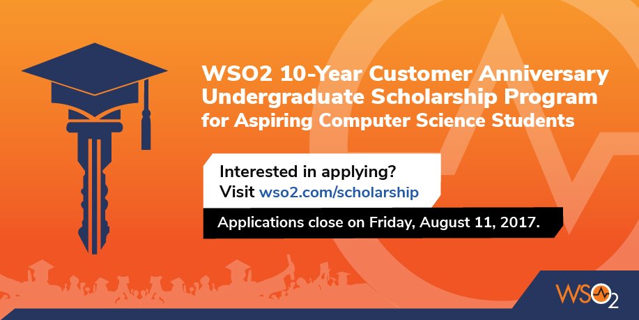 #WSO2's 10-Year Customer Anniversary Undergraduate Scholarship Program is now open for#computerscience students http://bit.ly/2vp3W5E pic.twitter.com/oE4iW2gFNk