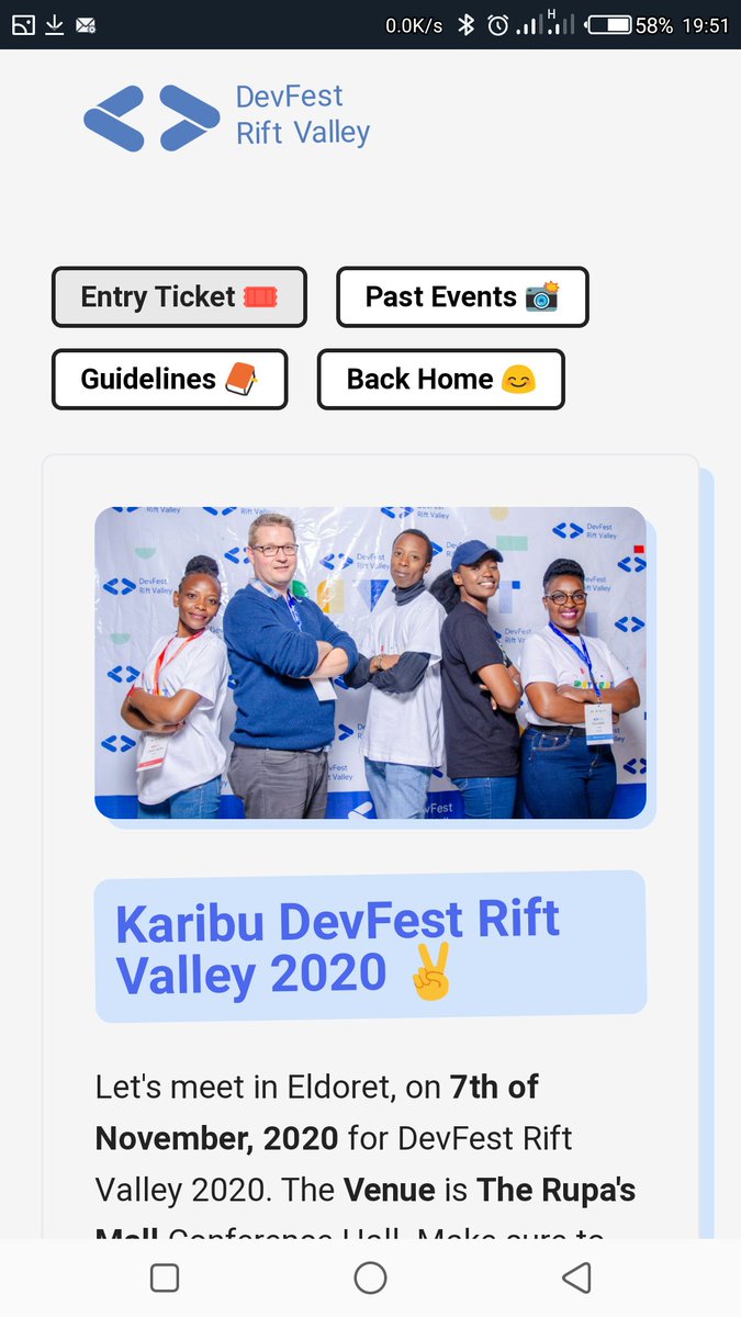 Happy to announce that DevFest Rift Valley 2020 edition is announced! Be sure to register and join us via our official GDG Eldoret web app. Glad to have built this tiny app that most people tend to love.