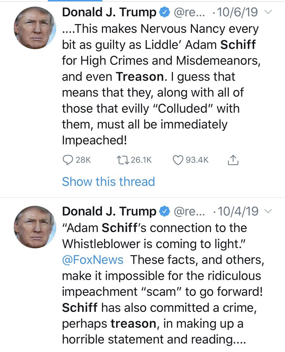 Just a reminder that treason is punishable by death, and Trump has accused Schiff of treason on multiple occasions.pic.twitter.com/pGLbsvRcaw