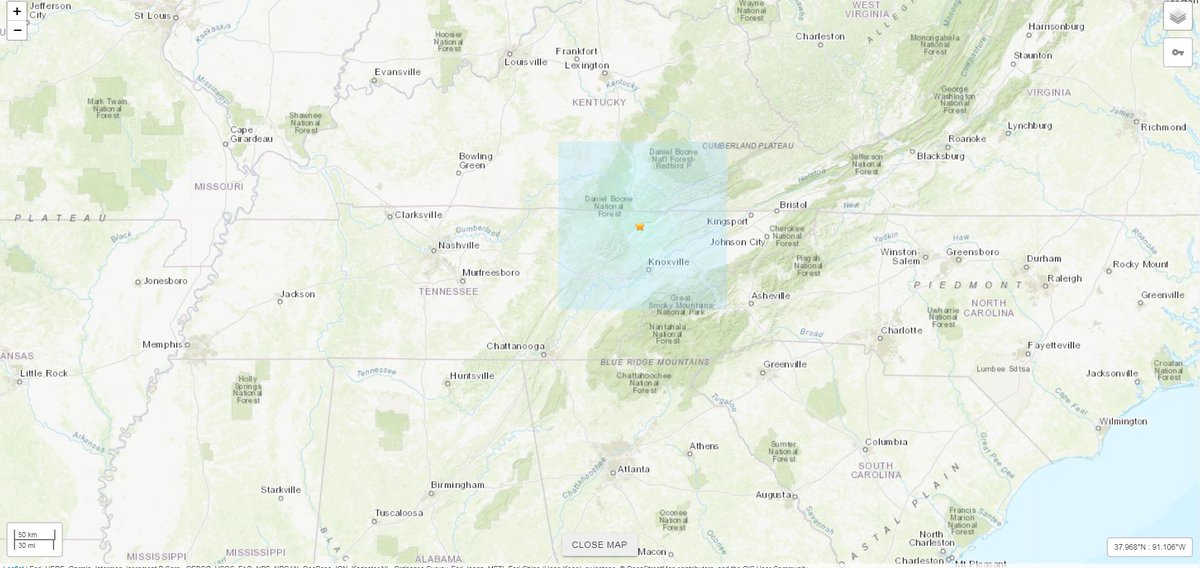 If you're inside the blue square you may have felt a 3.6 magnitude earthquake that hit Campbell County. Tell us about your experience! http://bit.ly/3ashxKH pic.twitter.com/QxJQ8NGXJn