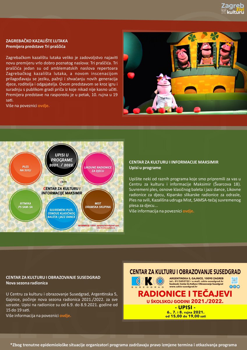 [ZAGREB ŽIVI KULTURU - PREGLED KULTURNE PONUDE] Sažeti pregled bogate kulturne ponude u našem gradu za razdoblje od 26.7. – 1.8.2021. pogledajte na