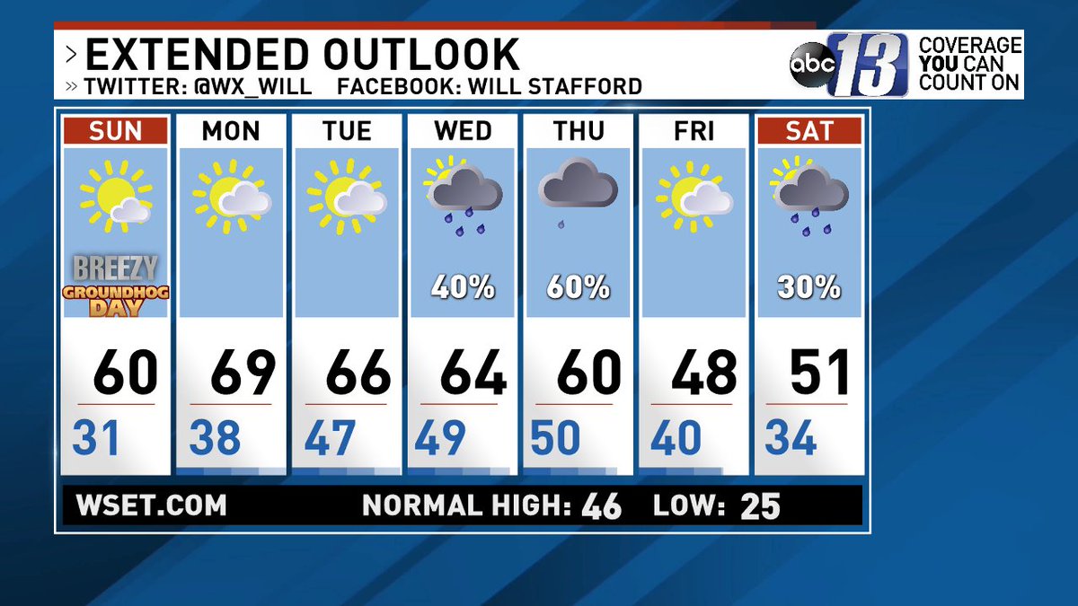Good Sunday! A Super Sunday on tap this afternoon. Sunshine, Breezy, and Warm. Highs around 60.pic.twitter.com/RMuuf5MZ9s