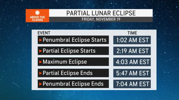 An impressive partial lunar eclipse is less than 24 hours away. The best time to look at the moon will be around 4 am EST / 1 am PST Friday: https://bit.ly/3qVkFcu pic.twitter.com/xO6JFPXVLc