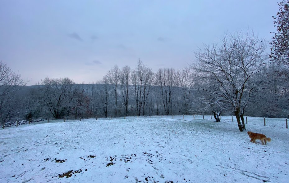 Woke up to the 1st measurable snow at the homestead (1.25 inches).