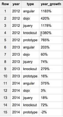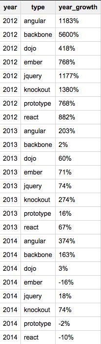 @wycats @commadelimited @svpino @tomdale @trek adoption amongst top ~300K sites, see (and improve :)) query here: http://bigqueri.es/t/how-are-the-most-popular-frameworks-growing-year-over-year/19 …