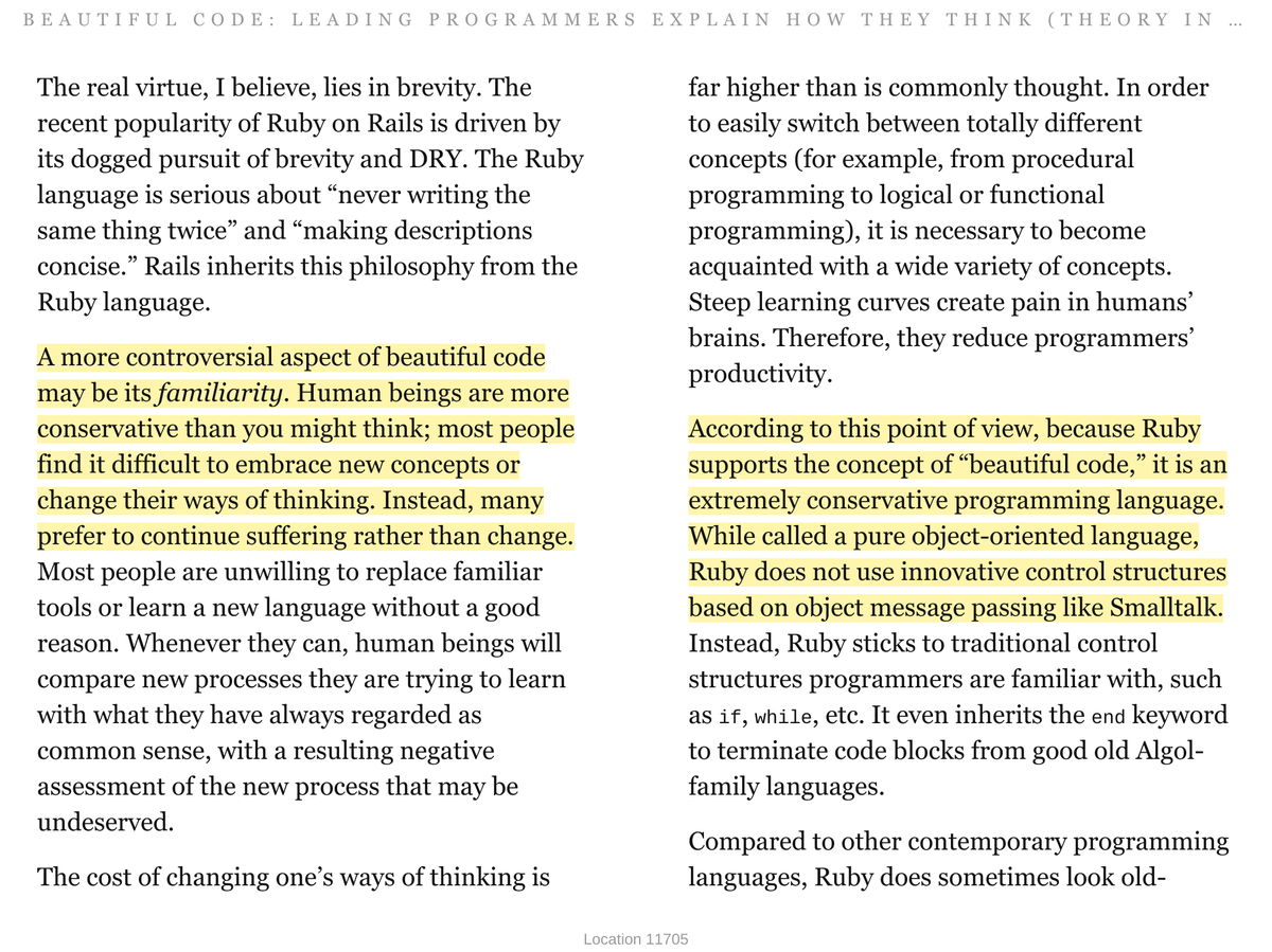 @noelrap@avdi This is actually a strong difference from the@richhickey and@reactjs perspective that people over-value "familiarity" -