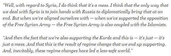 disagree - she helped create Aleppo w/ arms she gave to the ISIL jihadis there (when they were in Libya) - Johnson wouldn't do that.