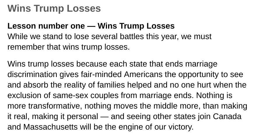 This is great reading. @evanwolfson speech about winning marriage equality in the bleak moment after losses in 2004 http://archive-freedomtomarry.org/evan_wolfson/speeches/scary_work_of_winning.php …