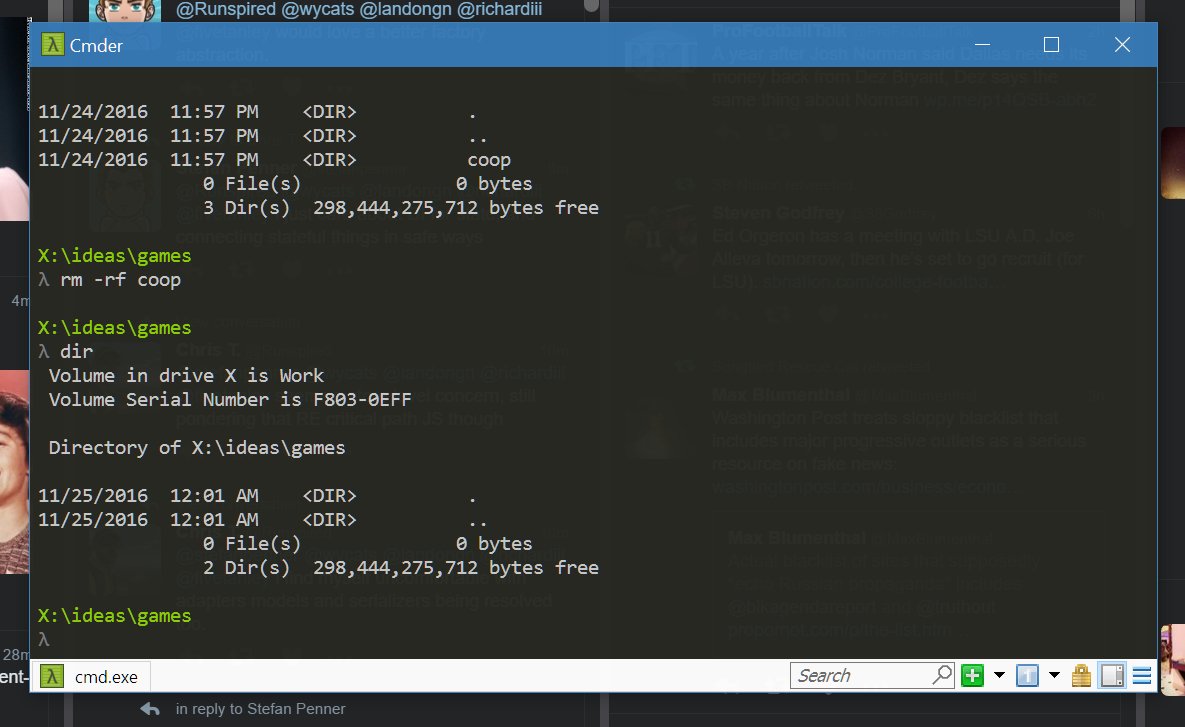 @wycats cmder is so good. thanks for the recco! i just attempted to rm -rf a folder and it just worked. #blessedpic.twitter.com/EKABNWEYum