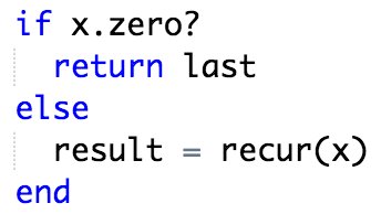 in Ruby I write code like this plenty: let result = if http://x.zero ? return last else recur(x) end Problem?