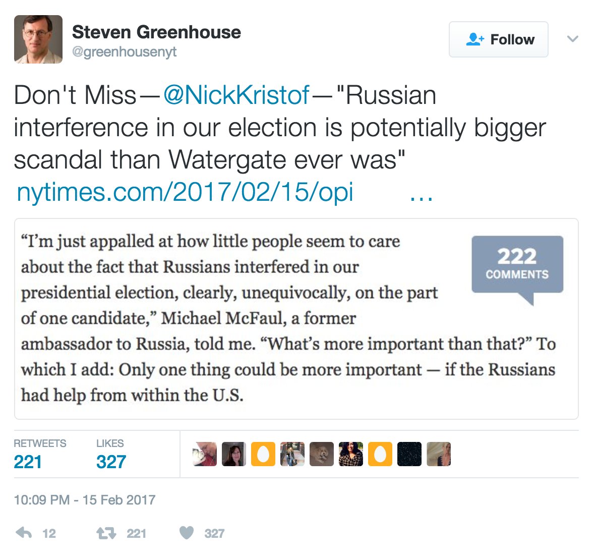 1. Michael Tracey‏Verified account @mtracey 15 Feb 2017
