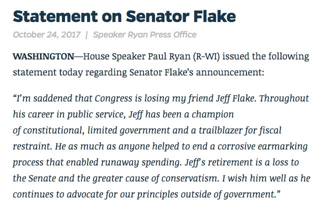 Senator Jeff Flake has been a champion of constitutional, limited government and a trailblazer for fiscal restraint. http://spkrryan.us/2gFQtQX pic.twitter.com/mrBKtLMAHM