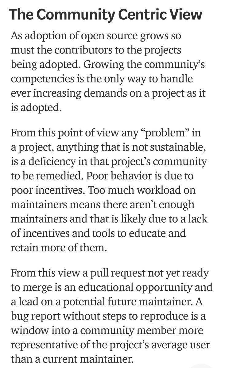 very much from the "maintainer" POV. It would have been great to see the same argument from the "community" perspective.