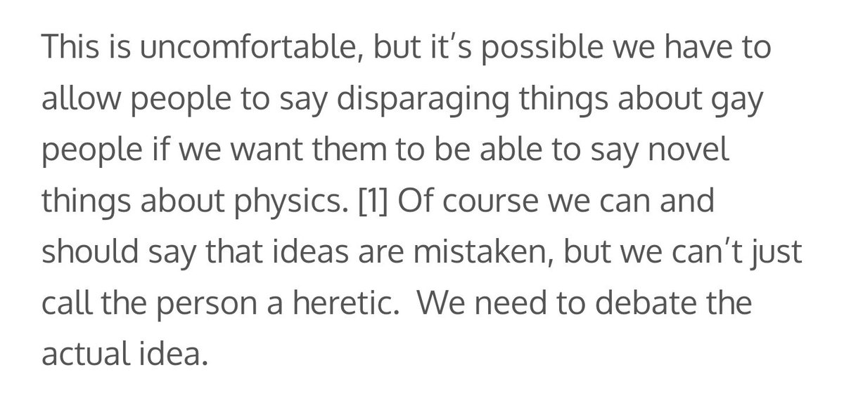 Indeed. The sentence was in a footnote. It was "latched onto" because he *actually used it as an example* and it illustrates the problem very crisply. This framing is just as bad. "Disparaging things about gay people" is not an "idea" like SpaceX or Bitcoin.pic.twitter.com/B0H6A2E7hb