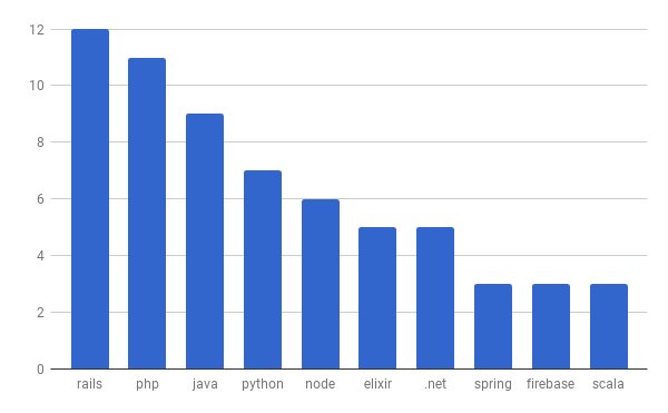 I tried to do that based on 252 responses, lower case, remove @ mentions, got most common word count, and folded libraries into languages. Take it with a grain of salt due to typos and massaging etc, but it shows a general trend.pic.twitter.com/HSAxJkxtsz